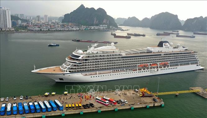 | Đầu năm 2025, nhiều tàu du lịch biển quốc tế đã ghé thăm Hạ Long. Ảnh: TTXVN phát |