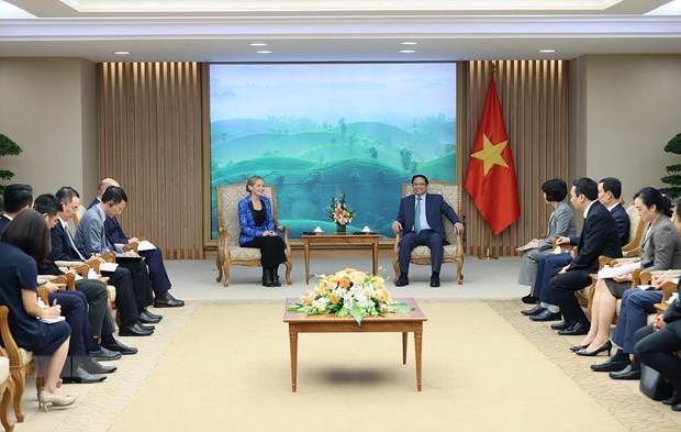 Thủ tướng Phạm Minh Chính tiếp bà Susan Pointer, Phó Chủ tịch Tập đoàn Amazon. (Ảnh: Dương Giang/TTXVN)