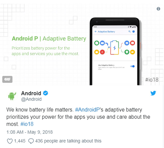 Android P sẽ có khả năng tối ưu hóa sử dụng pin.[/caption]