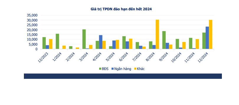| Giá trị trái phiếu doanh nghiệp sắp đáo hạn từ nay đến hết năm 2024. Nguồn VBMA |