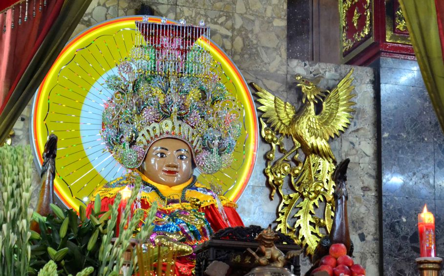 | Tượng Bà Chúa Xứ Núi Sam tôn nghiêm nơi chánh điện ngôi miếu. Ảnh: Lâm Điền |