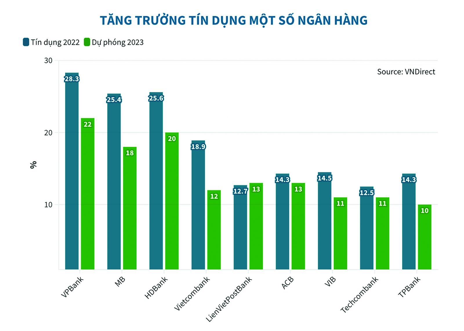 Tăng trưởng tín dụng thấp những tháng đầu năm đến từ việc nhiều doanh nghiệp xuất khẩu mất đơn hàng, không có nhu cầu vay vốn. Bên cạnh đó, mặt bằng lãi suất còn cao (trên 10%/năm), khiến doanh nghiệp cũng thận trọng vay đầu tư. Chưa kể, phân khúc tín dụng tiêu dùng và tín dụng cho vay nhà ở cũng chững lại một phần do khách hàng có tâm lý thắt lưng buộc bụng khi kinh tế khó khăn, thu nhập giảm, phần còn lại người vay chờ lãi suất vay mua nhà giảm xuống thấp hơn.