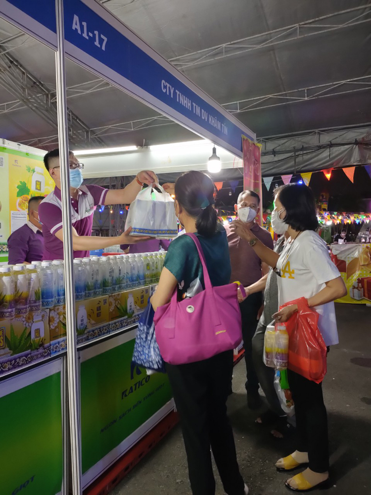 Để kích cầu người mua, khi khách hàng đến mua sắm tại gian hàng của Công ty TNHH TM DV Khâm Tín (KATICO), quý khách sẽ được uống thử các loại sản phẩm nước uống nổi tiếng của KATICO như Nha đam chanh dây AloePas, nha đam dưa lưới Aloe M, nha đam yến Aloe Nest,… trước khi mua và bên cạnh đó chúng tôi còn có chương trình khuyến mãi, tặng thêm quà cho khách hàng khi mua sản phẩm tại hội chợ như: mua 1 block 6 chai chỉ có giá 50.000 đồng và được tặng 2 chai bất kỳ khi mua 1 thùng chỉ có giá 198.000 đồng.