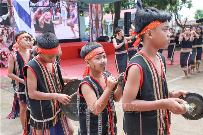 | Cộng đồng người dân tộc thiểu số (thành phố Kon Tum, tỉnh Kon Tum) trình diễn cồng chiêng, xoang. |