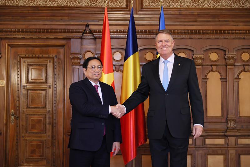 Tại cuộc tiếp, Tổng thống Romania Klaus Iohannis vui mừng được gặp lại Thủ tướng Phạm Minh Chính sau hai cuộc gặp nhân dịp Hội nghị cấp cao ASEAN-EU tháng 12/2022 và Đại hội đồng Liên Hợp Quốc tháng 9/2023. Tổng thống nhiệt liệt hoan nghênh chuyến thăm, coi đây là dấu mốc quan trọng trong việc thúc đẩy quan hệ hợp tác hữu nghị bạn bè truyền thống Romania - Việt Nam ngày càng phát triển; đánh giá cao vai trò của Việt Nam tại khu vực châu Á-Thái Bình Dương.