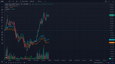 Trong đó, tỉ suất của NAB cũng nằm trong nhóm cổ phiếu tăng trưởng vượt bậc so với VN-Index và các cổ phiếu ngành ngân hàng khác. Điều gì làm nên sự khác biệt như thế? Nhà đầu tư kỳ vọng như thế nào về NAB trong một năm cổ phiếu ngành ngân hàng hầu như đi ngang.