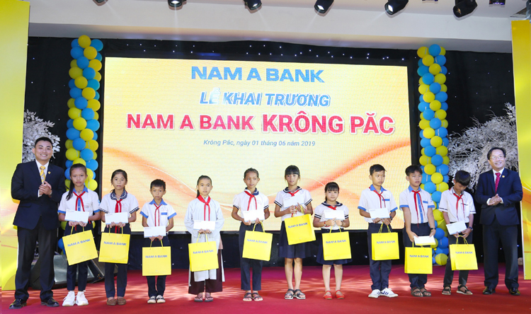 Nhân dịp khai trương, Nam A Bank Krông Păc đã trao tặng 10 suất học bổng cho các em học sinh tiểu học có hoàn cảnh khó khăn trên địa bàn huyện. Với món quà ý nghĩa này, Nam A Bank Krông Păc hy vọng sẽ tạo điều kiện, tiếp thêm động lực cho các em vươn lên học tập tốt hơn nữa để thực hiện những ước mơ, hoài bão của mình.
