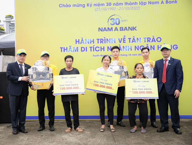 Bên cạnh hoạt động về nguồn nhiều ý nghĩa, nhân dịp này, Nam A Bank đã trao tặng 3 căn nhà tình thương với tổng trị giá 300 triệu đồng cho các hộ gia đình có hoàn cảnh đặc biệt khó khăn tại địa phương. Các căn nhà trên được xây dựng kiên cố, khang trang sẽ giúp bà con có nơi ở ổn định, phát triển kinh tế trong thời gian tới.