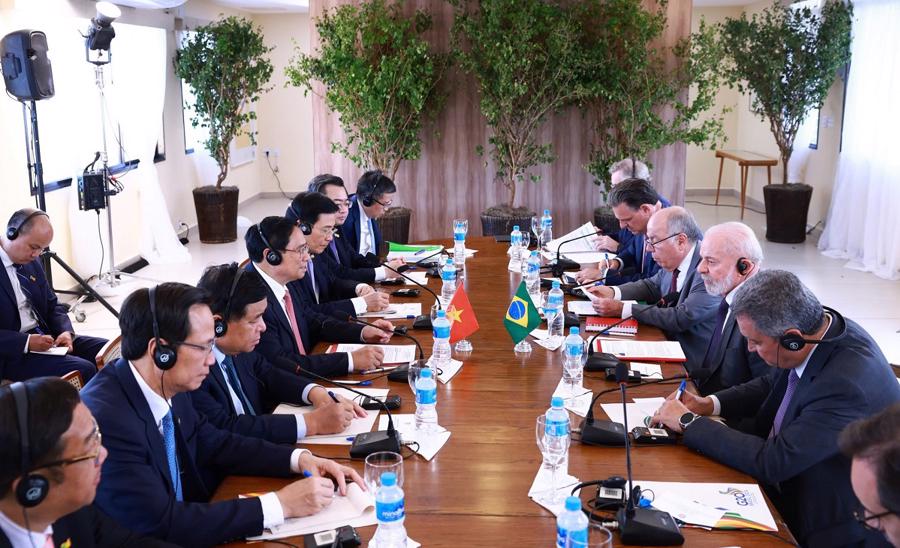 Ngày 17/11 theo giờ địa phương, trong khuôn khổ chuyến công tác Brazil, tham dự Hội nghị thượng đỉnh G20 tại thành phố Rio de Janeiro, Thủ tướng Chính phủ Phạm Minh Chính đã có cuộc hội đàm với Tổng thống Brazil Luiz Inácio Lula da Silva.