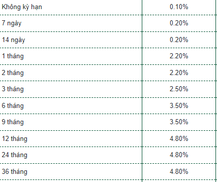 Vietcombank vẫn giữ nguyên lãi suất kỳ hạn 12-24 tháng là 4,8%/năm. Đây cũng là mức cao nhất tại nhà băng này.