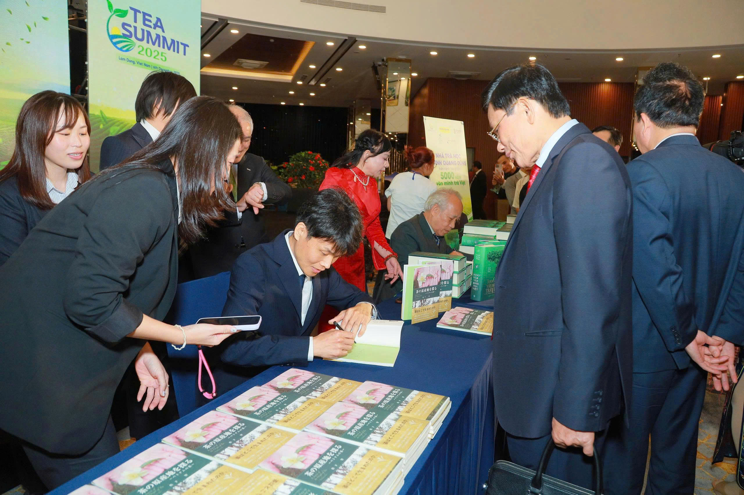 Đáng chú ý, công trình nghiên cứu Nguồn gốc trà thế giới của học giả Nhật Bản Matsushita Satoru, kết tinh từ hơn 70 năm khảo sát và điền dã khắp các vùng trà trên toàn cầu cũng được giới thiệu tại sự kiện. Đặc biệt, đại diện ủy thác của tác giả – Mr. Goto Hirosato đã trao tặng cho Ban tổ chức Lễ hội Trà Quốc tế 2025 bộ ảnh quý ghi lại toàn bộ hành trình nghiên cứu kéo dài bảy thập kỷ. Món quà này không chỉ mang giá trị tư liệu hiếm có mà còn thể hiện sự kết nối học thuật sâu sắc giữa Việt Nam và cộng đồng nghiên cứu trà thế giới.