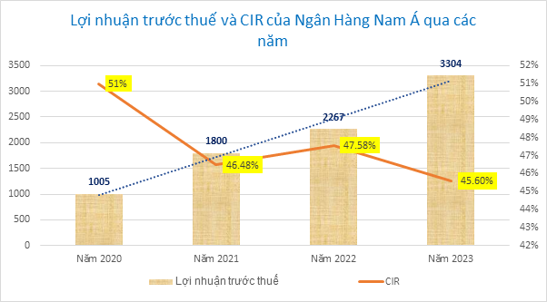 Năm 2023, các khoản thu ngoài lãi của ngân hàng này tăng trưởng mạnh mẽgần1.000 tỷ đồng, chiếm gần 32% lợi nhuận trước thuế. Việc kiểm soát tốt chi phí hoạt động và sự hiệu quả của cácmảng thu ngoài lãi là điểm đáng chú ý trong báo cáo kết quả kinh doanh của Nam A Bank trong năm 2023.