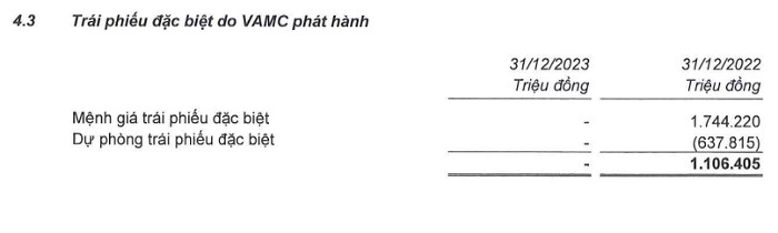 Đến cuối quý IV, Nam A Bank đã không còn trái phiếu đặc biệt do VAMC phát hành. Trước đó vào cuối quý III, ngân hàng vẫn còn 1.286 tỷ đồng mệnh giá trái phiếu đặc biệt của VAMC. Việc chủ động tất toán trước hạn trái phiếu đặc biệt VAMC được cho là sẽ tạo nền tảng vững chắc cho hoạt động kinh doanh của Nam A Bank trong những năm tới.