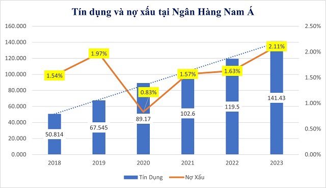 Cùng với những khó khăn chung của nền kinh tế, Số dư nợ xấu của ngân hàng năm 2023 ở mức 2.989 tỷ đồng ứng với tỷ lệ nợ xấu là 2,1%. Tuy nhiên nếu so với quý III, tỷ lệ và số dư nợ xấu của Nam A Bank đều đã đi xuống mạnh mẽ. Và điểm nhấn của quý 4/2023 là Ngân hàng đã xoá sạch nợ xấu tại VAMC.