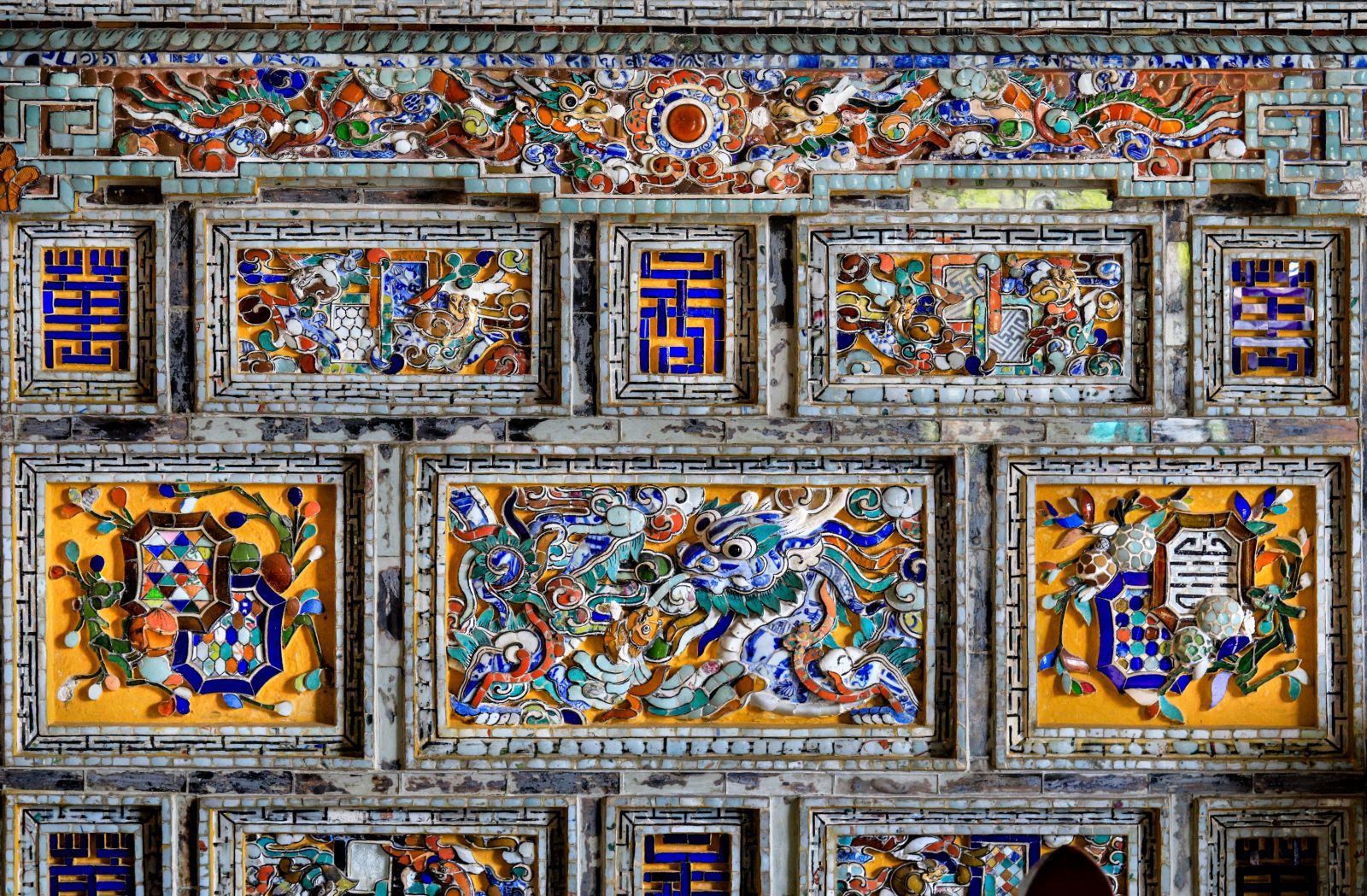 Tôi nhẩn nha dạo bước trong lăng Minh Mạng, tìm chụp những khung hình ưng ý và những mảng điêu khắc, kiến trúc còn sót lại của nơi này.