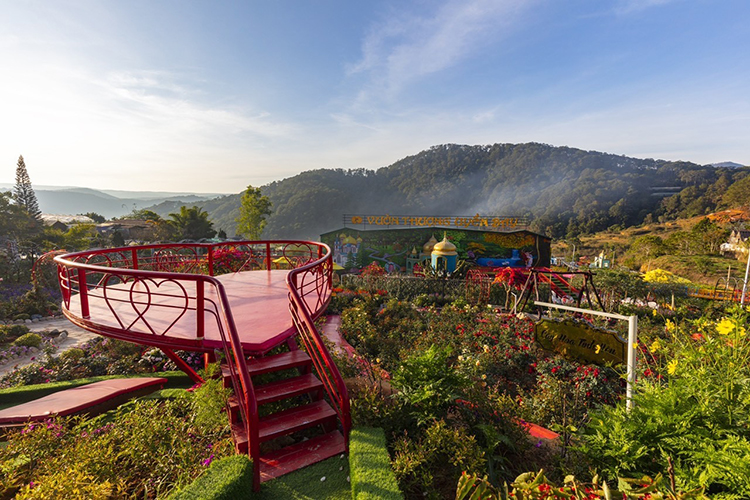 Vườn Thượng Uyển Bay sở hữu một thiên đường hoa hồng tuyệt sắc. Đôi lứa ghé thăm nơi đây, hãy một lần cùng nhau bước qua con đường hoa hồng muôn màu, muôn vẻ, vượt cả những quanh co của mê cung hoa huyền bí, đặt chân đến cung vua. Hoàn thành chặng đường ấy cùng nhau, bạn sẽ nhận được phước lành từ mảnh đất này, đó là hạnh phúc, là dài lâu, là viên mãn. Hai bạn có thể tự tay viết lời nguyện ước, cùng nhau treo lên cây đa tình yêu hay thề nguyền bên Cây Nữ Thần để đổi lấy mong ước về một tình yêu vẹn tròn.