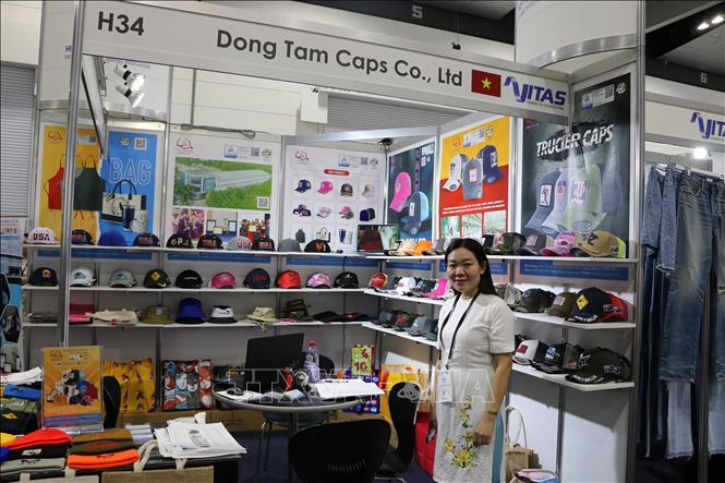 Gian hàng của Công ty Đồng Tâm Caps tại Global Sourcing Expo Australia 2023. Ảnh: Thanh Tú/Pv TTXVN thường trú tại Sydney, Australia