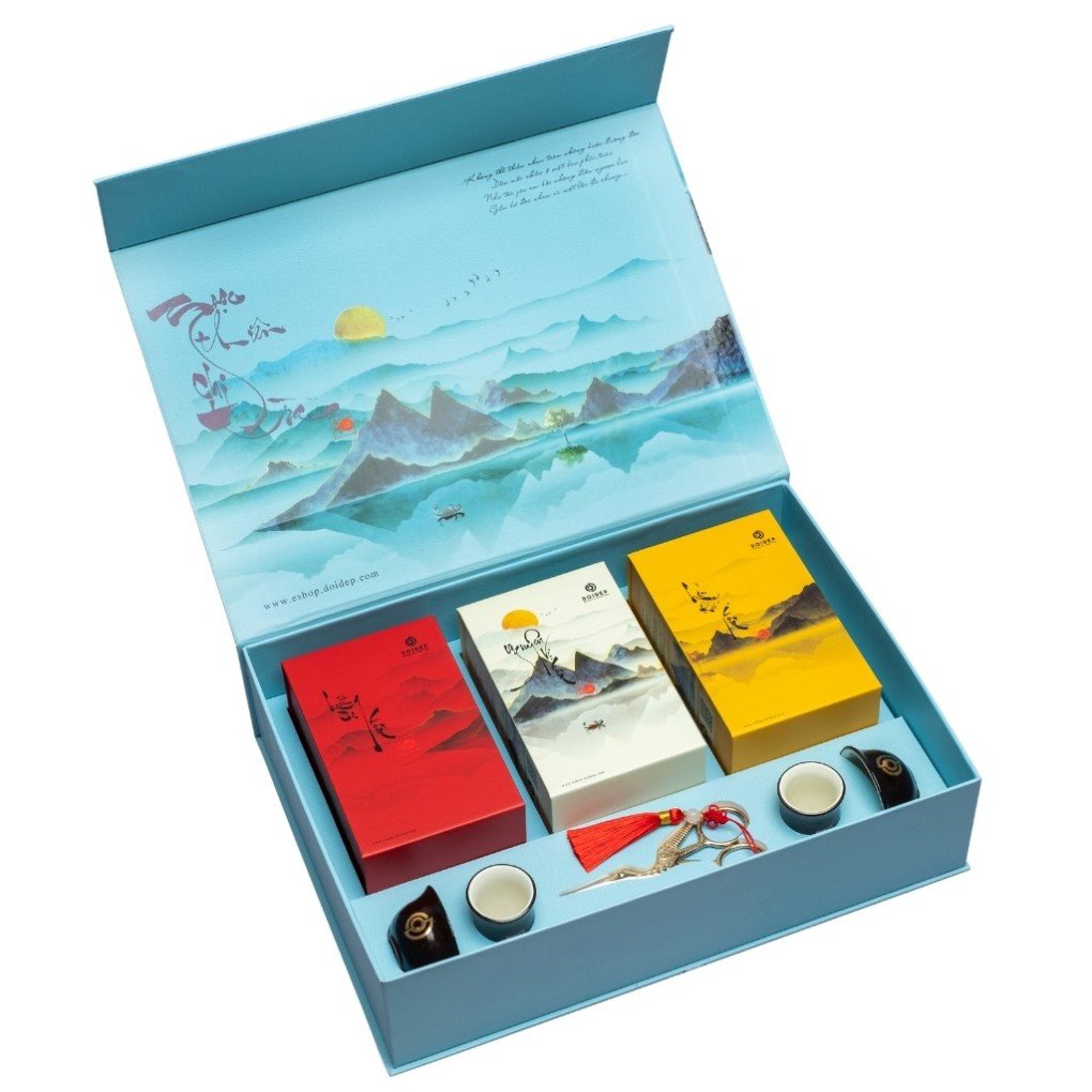 Qua sản phẩm Đôi Dép - Việt trà Thức, 3 loại trà Hương Phù Ngõa Đỉnh (hương trà thư thái từ ấm sành), Bất Thụ Đông Phong (tinh hoa trà quý giữa núi rừng khắc nghiệt), Tâm Thanh Mỹ Nhân (trà vị ngọt ngào như mật ong) thuộc bộ Cửu Nguyệt Trà vinh dự được lựa chọn. Ngoài ra, bộ quà Ngọc Thiên Chi Trà - được giới sành trà gọi là "Trà cống phẩm" tặng kèm khách quý cũng gây được tiếng vang.