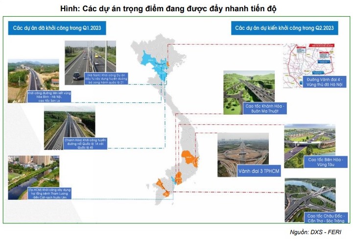 Cũng theo Agriseco, sự phát triển cơ sở hạ tầng kỳ vọng hỗ trợ phục hồi thị trường bất động sản. Các đại dự án trọng điểm đã đồng loạt được triển khai như cao tốc Bắc Nam giai đoạn 2021 – 2025, sân bay quốc tế Long Thành, Vành đai 3 TP.HCM, Vành đai 4 Hà Nội. Điều này sẽ tháo gỡ vấn đề hạ tầng ở Việt Nam hiện nay, qua đó, thúc đẩy các ngành nghề kinh doanh phát triển. Các dự án cao tốc sẽ giúp tăng tính kết nối giữa các vùng kinh tế, thu hút thêm nhiều nguồn vốn đầu tư vào Việt Nam.