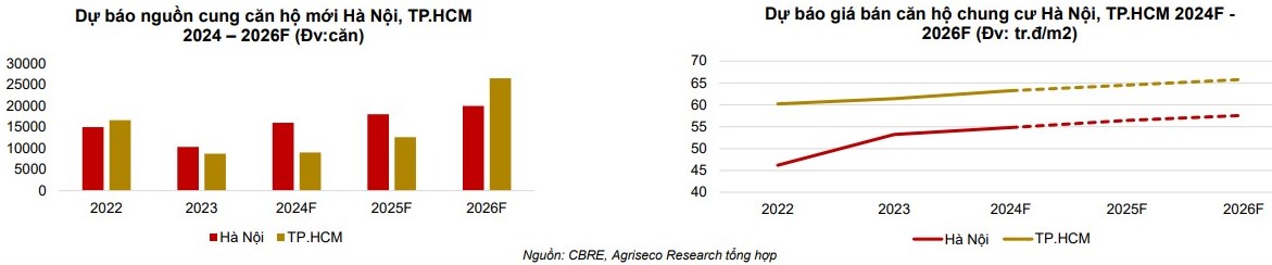 Về thanh khoản, Agriseco kỳ vọng thanh khoản 2024 khởi sắc hơn ở phân khúc chung cư trung cấp và bình dân, nhà ở xã hội ở trung tâm và các tỉnh ven trung tâm do nguồn cung mới chưa cải thiện nhưng nhu cầu mua nhà ở thực gia tăng; các nhà đầu tư bắt đầu giao dịch trở lại khi lãi suất cho vay giảm.