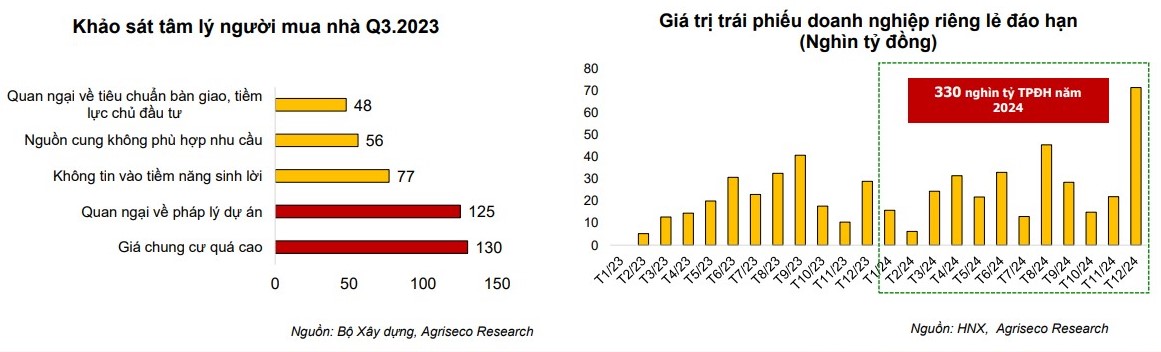 “Theo đó, các chủ đầu tư bất động sản có lợi thế về vốn, kinh nghiệm, có các dự án căn hộ chung cư đang bán, pháp lý đầy đủ với giá hợp lý tại các khu vực trên kỳ vọng sẽ ghi nhận kết quả kinh doanh tích cực. Đối với các doanh nghiệp kinh doanh trong phân khúc nghỉ dưỡng, đất nền ở vị trí xa trung tâm với giá bán cao sẽ chưa thể phục hồi trong năm 2024”, Agriseco nhận định.