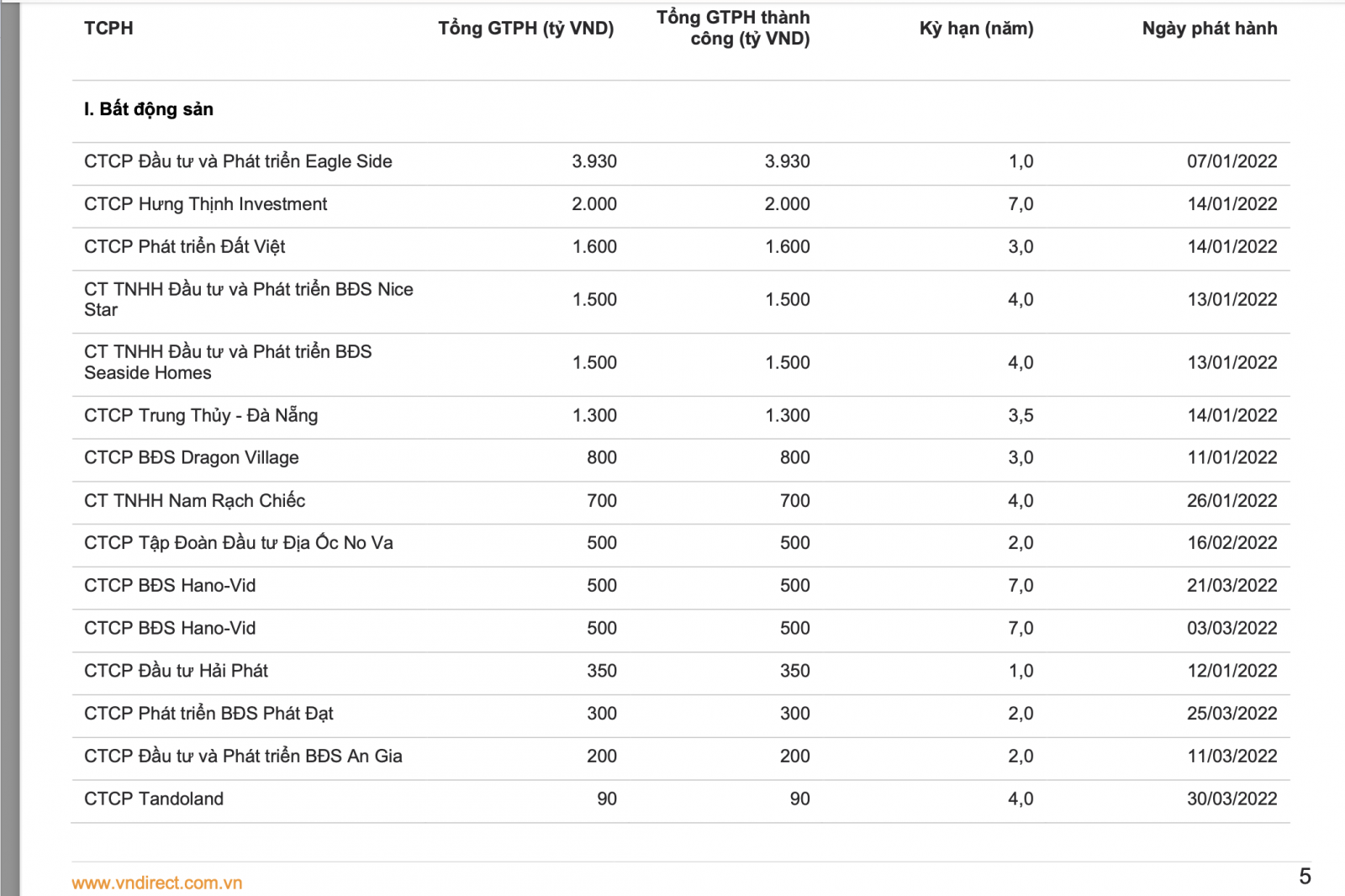 Các doanh nghiệp có tỷ lệ phát hành TPDN lớn nhất quý 1/2022