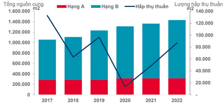 Nhu cầu cho nguồn cung Hạng A tại khu vực Trung tâm có dấu hiệu phục hồi trong Q4 2022, với lượng hấp thụ dương được ghi nhận ở nhiều tòa nhà. Nhìn chung cả năm 2022, chỉ số hấp thụ dương đã được ghi nhận ở cả những tòa nhà Hạng A và Hạng B trên toàn thị trường. Khu phía Nam và khu Trung tâm vẫn là những khu vực có lượng hấp thụ văn phòng cao nhất.