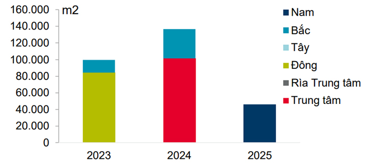 Nguồn: Cushman & Wakefield Dự án nổi bật: The Hallmark (2023 – 54.500 m2), The Mett* (2023 – 30.000 m2), The Nexus (2024 – 34.000 m2), The Sun Tower (2024 – 67.573 m2), e.Town 6 (2024 – 35.000 m2), UOA Tower II (2025 – 45.806 m2) |