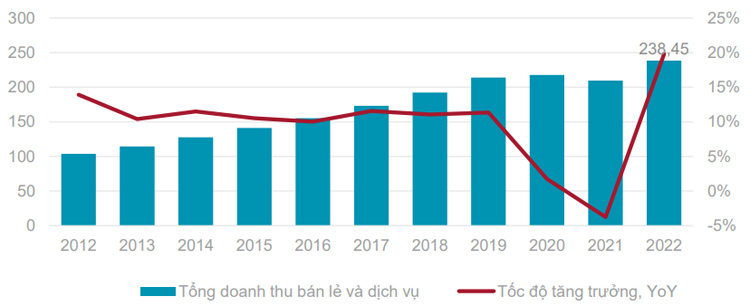Biểu đồ Tổng doanh thu bán lẻ và dịch vụ vàtốc độ tăng trưởng