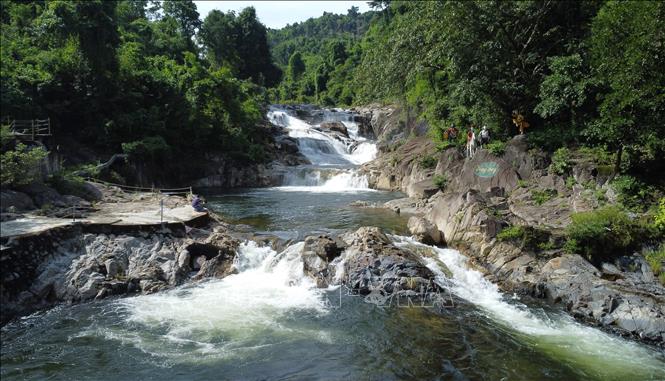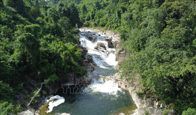 | Thác Yang Bay nhìn từ trên cao xuống uốn mình như dải tóc nàng tiên. Ảnh: Phan Sáu - TTXVN |