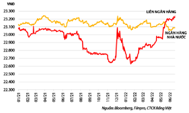 Ngân hàng UOB cảnh báo, động thái tăng lãi suất quyết liệt của FED và lo ngại suy thoái kinh tế Trung Quốc ngày càng sâu, sẽ khiến các đồng tiền châu Á chịu áp lực giảm giá hơn nữa, trong đó VND không đứng ngoài xu thế. Tỷ giá USD/VND quý 2/2022 đã tăng lên 23.215, mức cao nhất kể từ tháng 8/2020.