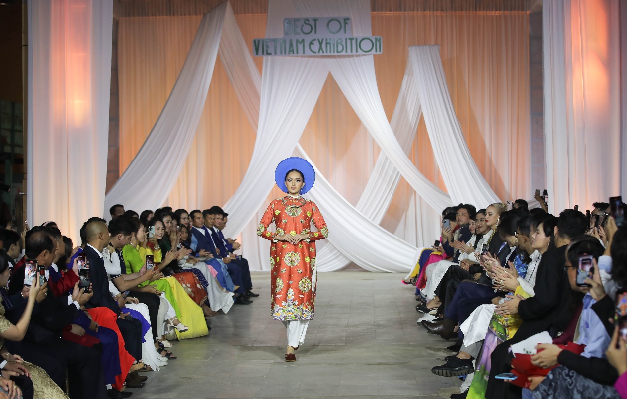 Thí sinh Miss Cosmo trình diễn áo dài tại không gian nhà máy chè 1927 |