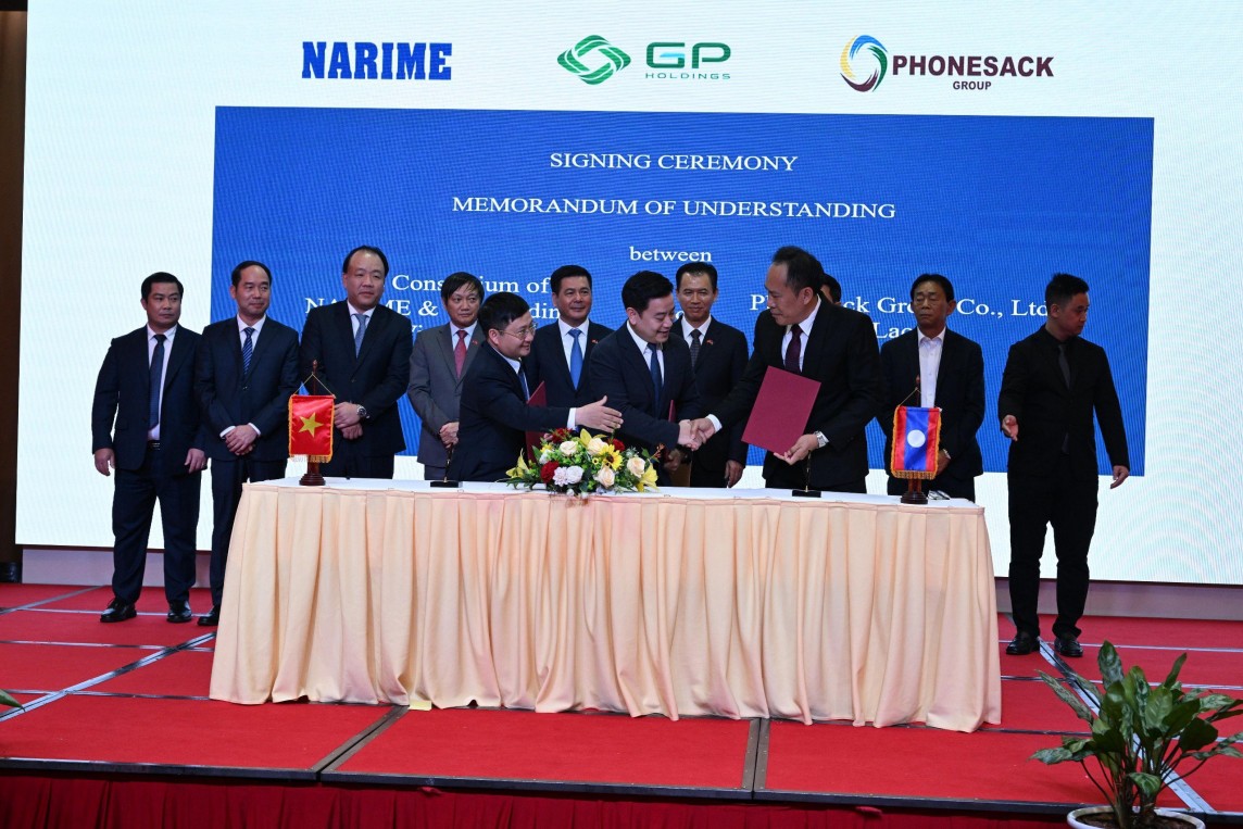 | GP Holdings, Viện Nghiên cứu Cơ khí và Tập đoàn Phonesack Group thực hiện ký Biên bản ghi nhớ hợp tác giữa về hợp tác xây dựng kho bãi và băng truyền tải than dưới sự chứng kiến của Bộ trưởng Bộ Công Thương Việt Nam và Lào |