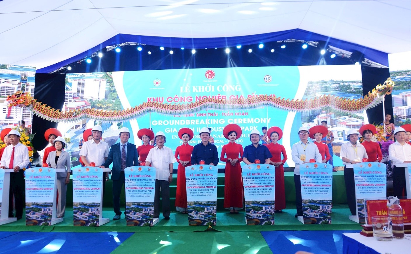 Dự án được khởi công ngày 9/7/2023, tại huyện Gia Bình (Bắc Ninh), là mô hình KCN sinh thái – kinh tế tuần hoàn – tiết kiệm và bảo vệ tài nguyên môi trường xanh, sạch đẹp, sử dụng năng lượng mặt trời và điện gió, tái sử dụng nguồn nước thải vào sản xuất. Đặc biệt, để triển khai dự án, Tập đoàn HANAKA đã quyết định ký kết hợp đồng chuyển giao công nghệ xây dựng khu công nghiệp sinh thái tuần hoàn với Tập đoàn Takaoka Toko Nhật Bản.
